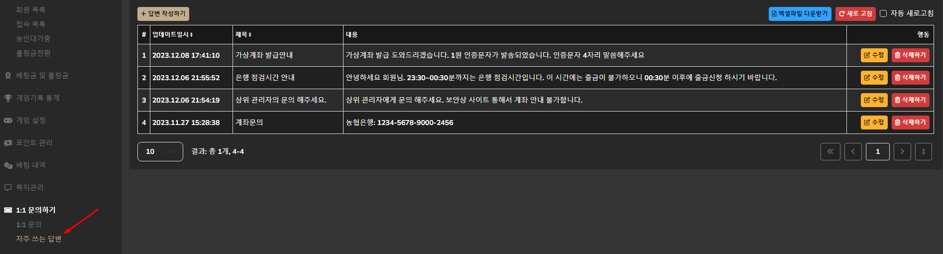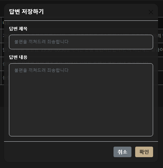 <figure><img src="https://1886374918-files.gitbook.io/~/files/v0/b/gitbook-x-prod.appspot.com/o/spaces%2FkkzlY45gpT3K9DAlkzsK%2Fuploads%2FWCakvuS0bk0WHFcaKMhb%2Fimage.png?alt=media&#x26;token=d7aaa979-cb32-4087-bea4-58214e59a6a4" alt=""><figcaption><p>문의 답변</p></figcaption></figure>